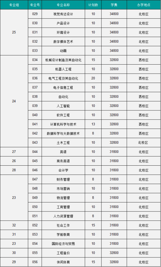 4.退役士兵批次专业组24仅招工学类专业专科学生,专业组25仅招收艺术设计类专业专科学生,且不招收色盲考生;学前教育、休闲体育、工程造价、会计学、商务英语专业的前置专业要求与普通类专升本专业一致;