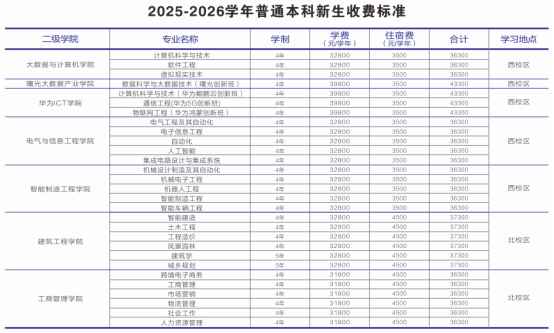●西校区:普通公寓4人间,上下床,2500元/学年/床(仅限男生);