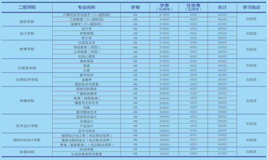 ●北校区:普通公寓4人间,上床下桌,4500元/学年/床。